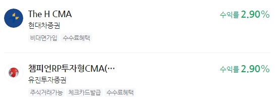 The H CMA 현대차증권 - 증권사 cma통장 금리비교
