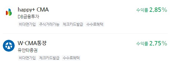 W-CMA통장 유안타증권 - 증권사 cma통장 금리비교
