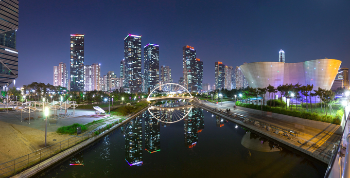 여기는 요즘 연인들, 가족들 사이에서 정말 핫한 관광지입니다. 화려한 빌딩 사이에 있는 푸른 공원 그리고 넓은 호수가 참 아름다운 송도입니다.