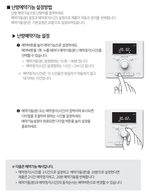 귀뚜라미보일러 사용설명서 - 거꾸로 ECO 콘덴싱 가스보일러_v2(NCTR-60W) 난방예약 사용방법, 설정방법