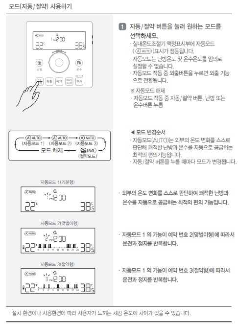 린나이 콘덴싱보일러 PJX9000사용설명서 : 실내온도조절기 자동/절약 사용방법, 설정방법