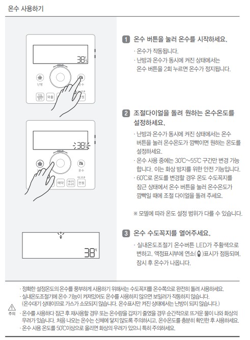 린나이 콘덴싱보일러 PJX9000사용설명서 : 실내온도조절기 온수 사용방법, 설정방법