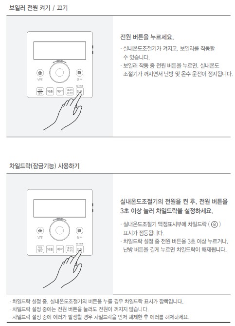 린나이 콘덴싱보일러 PJX9000사용설명서 : 실내온도조절기 온수 사용방법, 설정방법