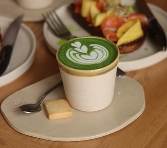 - 말차 페이스트와 따뜻한 우유를 섞어 완성합니다