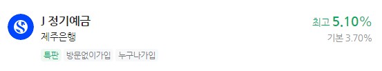 이자 높은 예금 추천 - 제주은행 J 정기예금 최고 5.10%