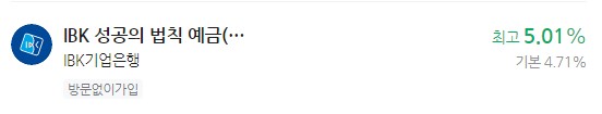 이자 높은 예금 추천 - IBK기업은행 IBK 성공의 법칙 예금(실세금리정기예금) 최고 5.01%