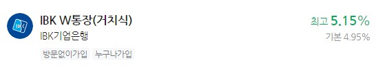 이자 높은 예금 추천 - IBK기업은행 IBK W통장(거치식) 최고 5.15%