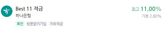 은행 이자 높은 적금 추천 - Best 11 적금 최고 11.00% 하나은행