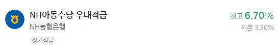 은행 이자 높은 적금 추천 - NH아동수당 우대적금 최고 6.70% NH농협은행