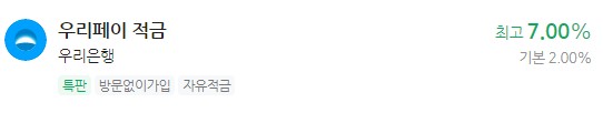은행 이자 높은 적금 추천 - 우리페이 적금 최고 7.00% 우리은행