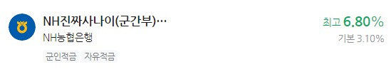 은행 이자 높은 적금 추천 - NH진짜사나이(군간부)적금 최고 6.80%