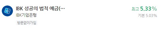 이자 높은 예금 추천 - IBK기업은행 IBK 성공의 법칙 예금(복리채) 최고 5.33%