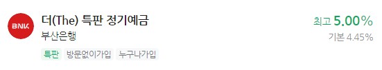 이자 높은 예금 추천 - 부산은행 더(The) 특판 정기예금 최고 5.00%