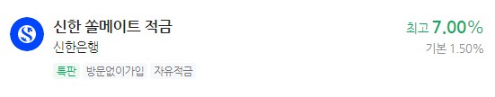 은행 이자 높은 적금 추천 - 신한 쏠메이트 적금 최고 7.00% 신한은행