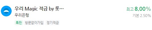 은행 이자 높은 적금 추천 - 우리 Magic 적금 by 롯데카드 최고 8.00% 우리은행
