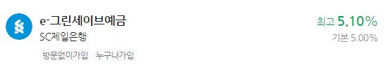 이자 높은 예금 추천 - SC제일은행 e-그린세이브예금 최고 5.10%