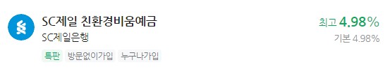 이자 높은 예금 추천 - SC제일은행 SC제일 친환경비움예금 최고 4.98%