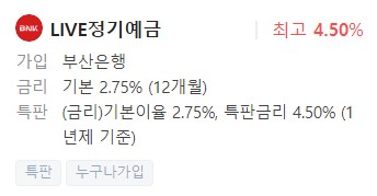 은행예금금리비교, 금리높은곳 - 부산은행 LIVE정기예금