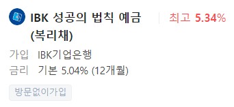 은행예금금리비교, 금리높은곳 - IBK기업은행 IBK 성공의 법칙 예금(복리채)