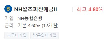 금리 : 4.60% (12개월), 최고 4.80%(12개월)