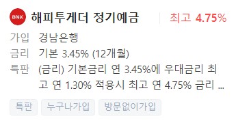 은행예금금리비교, 금리높은곳 - 경남은행 해피투게더 정기예금