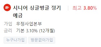 은행예금금리비교, 금리높은곳 - 우체국 시니어 싱글벙글 정기예금