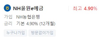 금리 : 4.90% (12개월), 최고 4.90%(12개월)