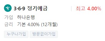 금리 : 4.00% (12개월), 최고 4.00%(12개월)