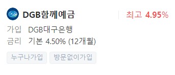 은행예금금리비교, 금리높은곳 - 대구은행 DGB함께예금