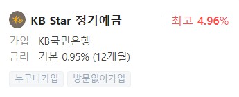 금리 : 0.95% (12개월), 최고 4.96%(12개월)