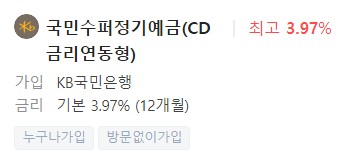 은행예금금리비교, 금리높은곳 - KB국민은행 국민수퍼정기예금(CD금리연동형)