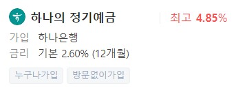 금리 : 2.60% (12개월), 최고 4.85%(12개월)