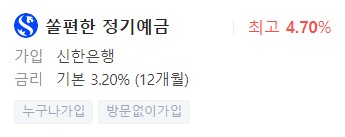 은행예금금리비교, 금리높은곳 - 신한은행 쏠편한 정기예금
