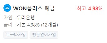 은행예금금리비교, 금리높은곳 - 우리은행 WON플러스 예금