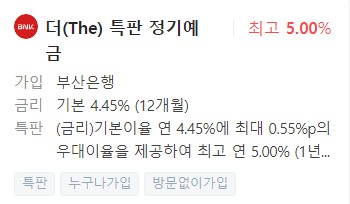 은행예금금리비교, 금리높은곳 - 부산은행 더(The) 특판 정기예금