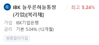 금리 : 5.04% (12개월), 최고 5.24%(12개월)