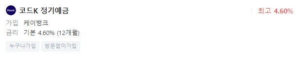금리 : 4.60% (12개월), 최고 4.60%(12개월)