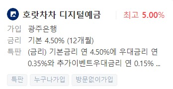 은행예금금리비교, 금리높은곳 - 광주은행 호랏차차 디지털예금