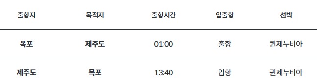 목포에서 제주도 배편 시간(퀸제누비아)