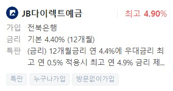 은행예금금리비교, 금리높은곳 - 전북은행 JB다이렉트예금