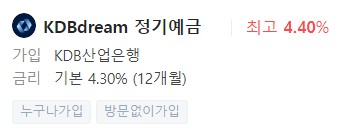 은행예금금리비교, 금리높은곳 - KDB산업은행 KDBdream 정기예금