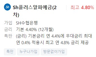 은행예금금리비교, 금리높은곳 - 수협 Sh플러스알파예금(2차)