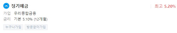 금리 : 5.10% (12개월), 최고 5.20%(12개월)