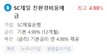 은행예금금리비교, 금리높은곳 - SC제일은행 SC제일 친환경비움예금
