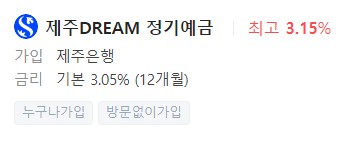 은행예금금리비교, 금리높은곳 - 제주은행 제주DREAM 정기예금