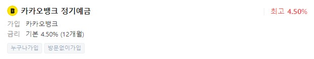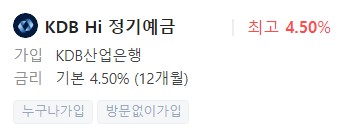 금리 : 4.50% (12개월), 최고 4.50%(12개월)