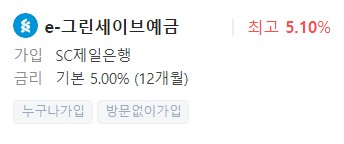 은행예금금리비교, 금리높은곳 - SC제일은행 e-그린세이브예금