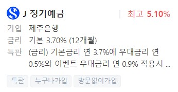 은행예금금리비교, 금리높은곳 - 제주은행 J 정기예금