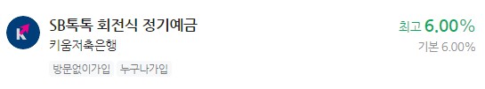저축은행예금금리비교, 금리높은곳 - 키움저축은행 SB톡톡 회전식 정기예금