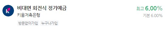저축은행예금금리비교, 금리높은곳 - 키움저축은행 비대면 회전식 정기예금